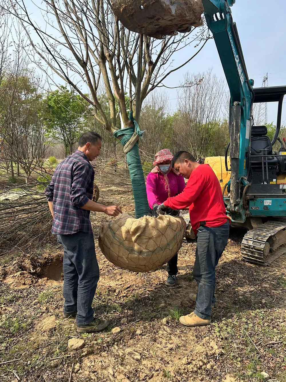 利用(yòng)麻布加鋼絲網打包÷ε₩,運輸途中土(tǔ)球不(bù)易破損
